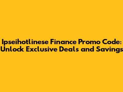 Ipseihotlinese Finance Promo Code: Deals & Savings