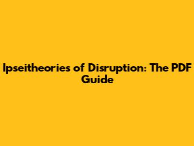 Ipseitheories Of Disruption: The PDF Guide