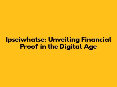 Ipseiwhatse: Unveiling Financial Proof In The Digital Age