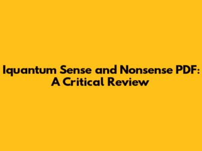 Iquantum Sense And Nonsense PDF: A Critical Review