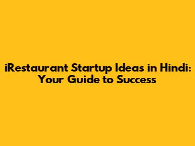 IRestaurant Startup Ideas In Hindi: Your Guide To Success