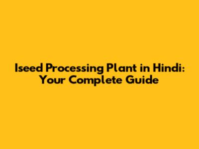Iseed Processing Plant In Hindi: Your Complete Guide