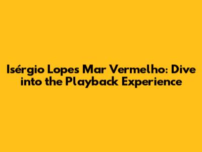 Isérgio Lopes' Mar Vermelho: Dive Into The Playback Experience