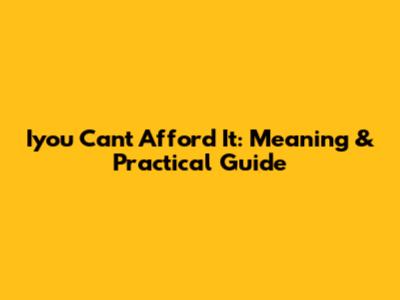 Iyou Can't Afford It: Meaning & Practical Guide
