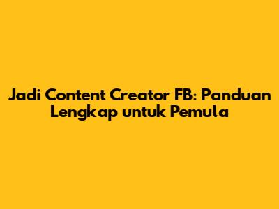 Jadi Content Creator FB: Panduan Lengkap Untuk Pemula