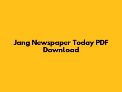 Jang Newspaper Today: Download PDF (Updated Daily)
