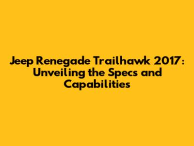 Jeep Renegade Trailhawk 2017: Specs, Features, And More!