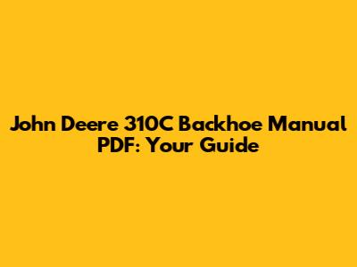 John Deere 310C Backhoe Manual PDF: Your Guide