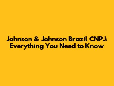 Johnson & Johnson Brazil CNPJ: Everything You Need To Know