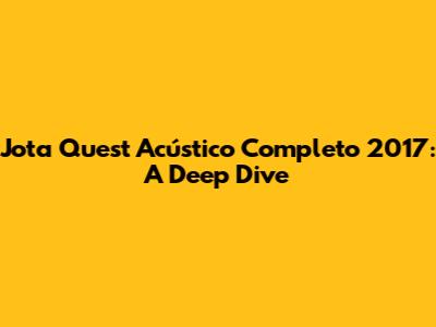 Hey guys! Let's dive into the amazing world of Jota Quest's Acústico album from 2017. This wasn't just another acoustic release; it was a reimagining of their greatest hits, bringing a fresh, intimate feel to songs we've all come to love. If you're a long-time fan or just discovering Jota Quest, this is one performance you definitely need to know about.