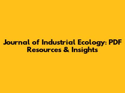 Journal Of Industrial Ecology: PDF Resources & Insights