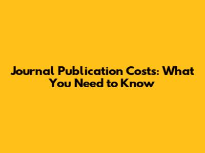 Journal Publication Costs: What You Need To Know