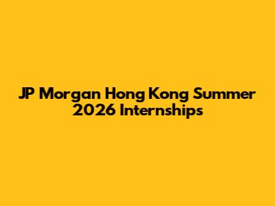 JP Morgan Hong Kong Summer 2026 Internships