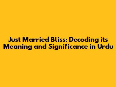 Just Married Bliss: Meaning & Significance In Urdu
