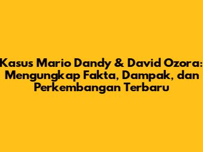 Kasus Mario Dandy dan David Ozora menggemparkan publik Indonesia, guys. Sebuah tragedi yang melibatkan penganiayaan brutal yang dilakukan oleh Mario Dandy Satrio terhadap David Ozora, seorang remaja. Peristiwa ini bukan hanya sekadar berita kriminal, tapi juga membuka mata kita terhadap berbagai isu sosial, hukum, dan moral yang mendasar. Mari kita bedah kasus ini secara mendalam, mulai dari kronologi kejadian, dampak yang ditimbulkan, hingga update terbaru yang patut kita ketahui. So, let's dive in!