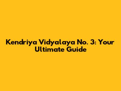 Kendriya Vidyalaya No. 3: A Comprehensive Guide
