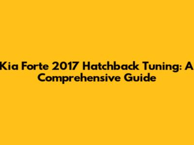 Kia Forte 2017 Hatchback: Tuning Guide