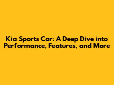 Kia Sports Car: Performance, Features, And Buying Guide