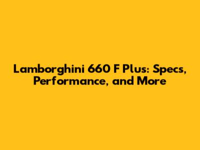 Lamborghini 660 F Plus: Specs, Performance, And More