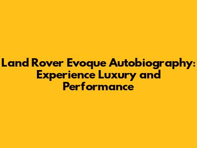 Hey there, car enthusiasts! Today, we're diving deep into the world of the Land Rover Evoque Autobiography, a vehicle that perfectly blends luxury, performance, and iconic design. If you're looking for an SUV that makes a statement, turns heads, and delivers an exceptional driving experience, then buckle up! We're about to explore everything you need to know about the Evoque Autobiography, from its stunning features to its impressive capabilities. Get ready to discover why this SUV is a top contender in the luxury compact SUV segment. The Evoque Autobiography is more than just a car; it's a lifestyle, a symbol of sophistication, and a testament to Land Rover's commitment to excellence. Let's get started, shall we?
