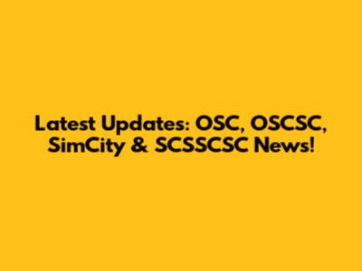 Latest Updates: OSC, OSCSC, SimCity & SCSSCSC News!