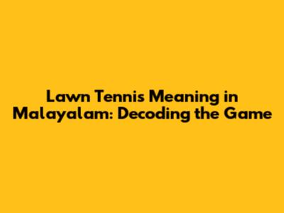 Lawn Tennis Meaning In Malayalam: A Comprehensive Guide