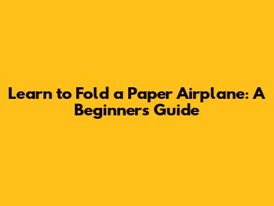 Learn To Fold A Paper Airplane: A Beginner's Guide