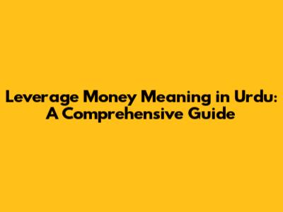 Leverage Money Meaning In Urdu: A Comprehensive Guide