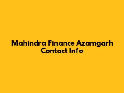Mahindra Finance Azamgarh Contact Info