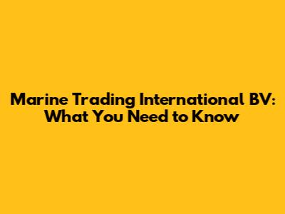 Understanding Marine Trading International BV's Role in Global Commerce