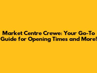 Hey guys! Planning a trip to Market Centre Crewe? Whether you're a local or just passing through, knowing the opening times is super important. But don't worry, I've got you covered with all the essential details to make your visit smooth and enjoyable. Let's dive in!