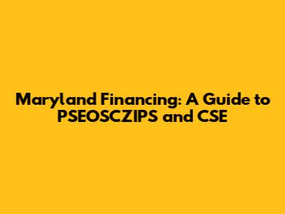 Maryland Financing Guide: Navigating PSEOSCZIPS And CSE