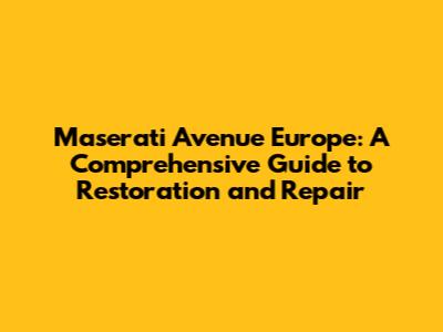 Maserati Avenue Europe: Restoration & Repair Guide