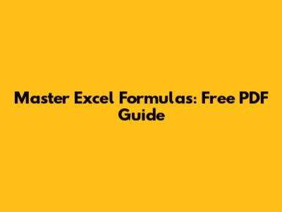 Master Excel Formulas: Free PDF Guide