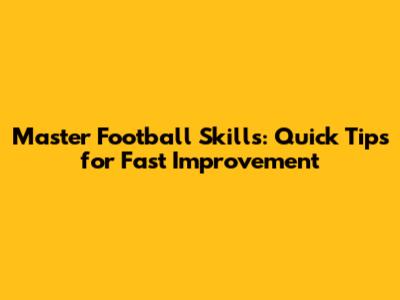 Master Football Skills: Quick Tips For Fast Improvement