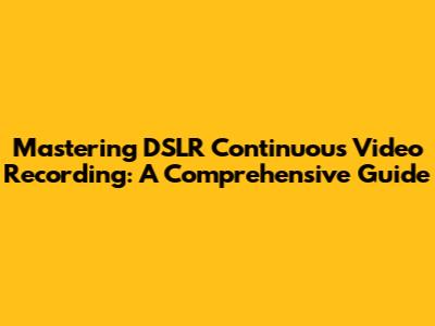 Mastering DSLR Continuous Video Recording