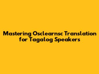 Mastering Osclearnsc Translation For Tagalog Speakers