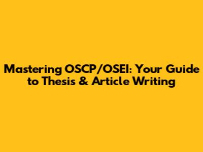 Mastering OSCP/OSEI: Your Guide To Thesis & Article Writing
