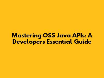 Mastering OSS Java APIs: A Developer's Essential Guide