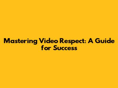 Mastering Video Respect: A Guide For Success