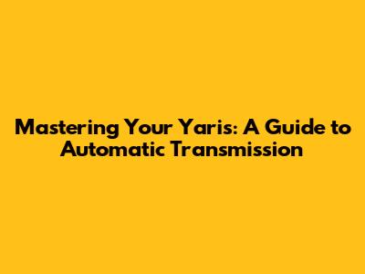 Mastering Your Yaris: A Guide To Automatic Transmission