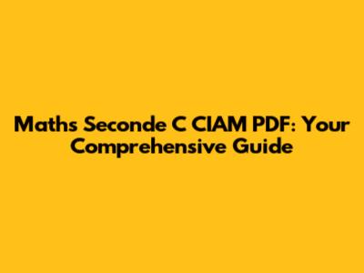 Maths Seconde C CIAM PDF: Your Comprehensive Guide
