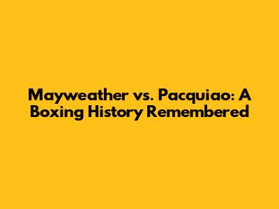 Mayweather Vs. Pacquiao: The Historic Boxing Bout