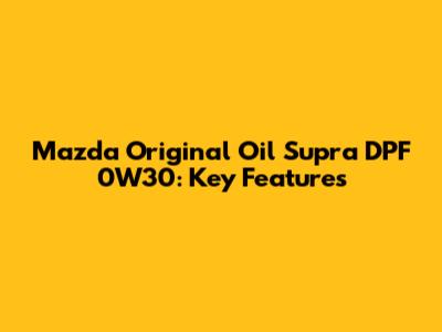 Mazda Original Oil Supra DPF 0W30: Key Features