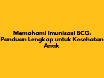 Imunisasi BCG adalah vaksin yang sangat penting untuk melindungi anak-anak dari penyakit tuberkulosis (TB). Dengan memahami tujuan, manfaat, cara pemberian, dan efek sampingnya, orang tua dapat membuat keputusan yang tepat untuk kesehatan anak mereka. Jangan ragu untuk berkonsultasi dengan dokter atau petugas kesehatan untuk mendapatkan informasi lebih lanjut tentang imunisasi BCG. Imunisasi BCG adalah langkah penting dalam melindungi anak-anak dari penyakit yang serius dan memberikan mereka kesempatan untuk tumbuh dan berkembang dengan sehat.