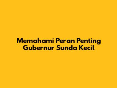 Memahami Peran Penting Gubernur Sunda Kecil