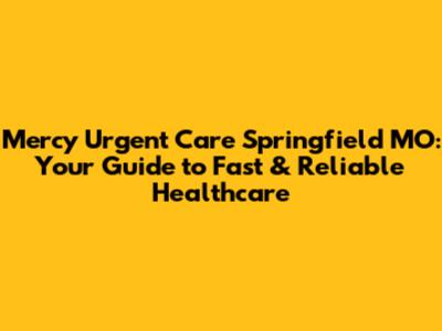 Mercy Urgent Care In Springfield, MO: Your Guide