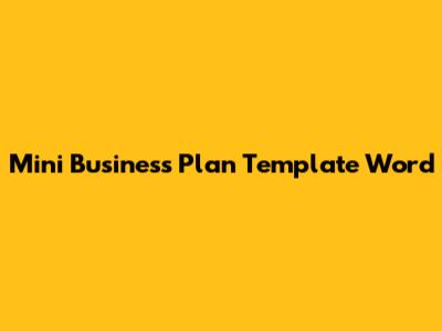Mini Business Plan Template: Free Word Template