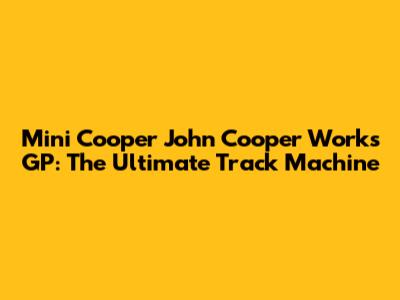 Mini Cooper John Cooper Works GP: The Ultimate Track Machine