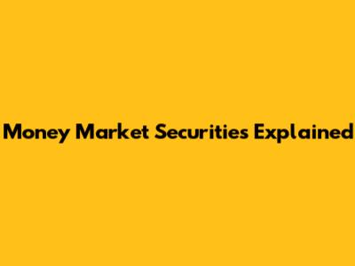 Money Market Securities Explained